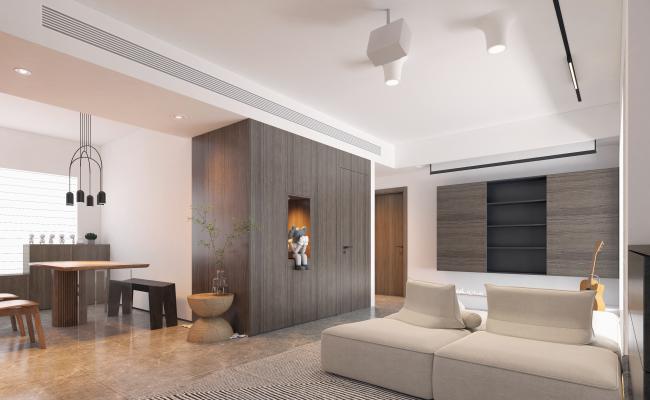 業主是建安集團廣州穗龍公司董事長,這套房主要考慮自住,要求低調內斂的奢華,突出品質感,不浮夸,所以針對業主的年齡階段和審美層次,選擇了新中式作為風格表達