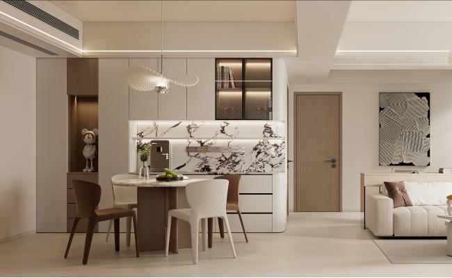 原木為詩,自然為家,在喧囂中,邂逅一份純粹的生活美學; 整體以自然原木風,以天然木材為底色,保留木材原始的肌理與觸感,從地板到家具,從墻面到裝飾,以淺白色,米白和大地棕為主調,點綴綠植的生機