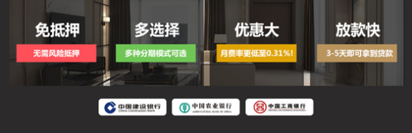 放大招,聯(lián)合多家銀行裝修優(yōu)質(zhì)分期,額度最高達100萬!最高五年靈活期限,月費率更低至0.31%!免抵押,免擔保,手續(xù)簡單,辦理快捷!