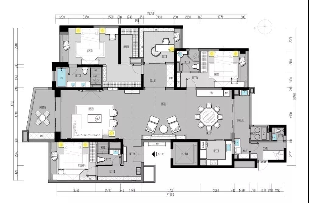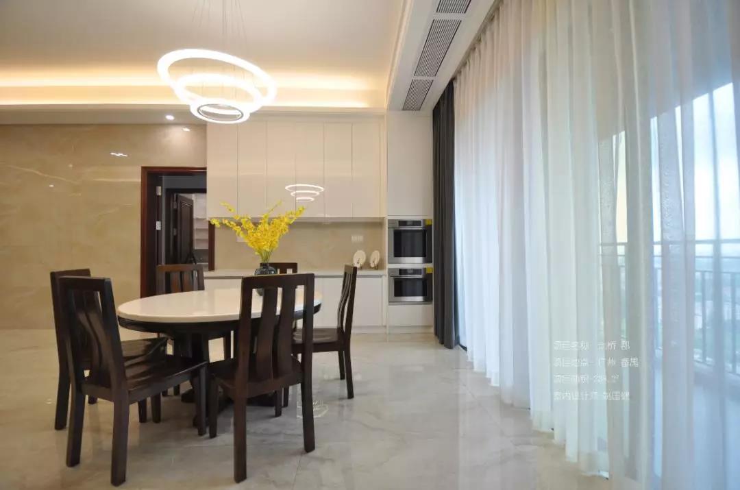 姚工:這個案例的廚房偏小,這里是一個硬傷,但是我們因地制宜做了中西廚的方案出來,而且中西廚的中間就是餐廳,中心圍繞的概念非常適合生活。