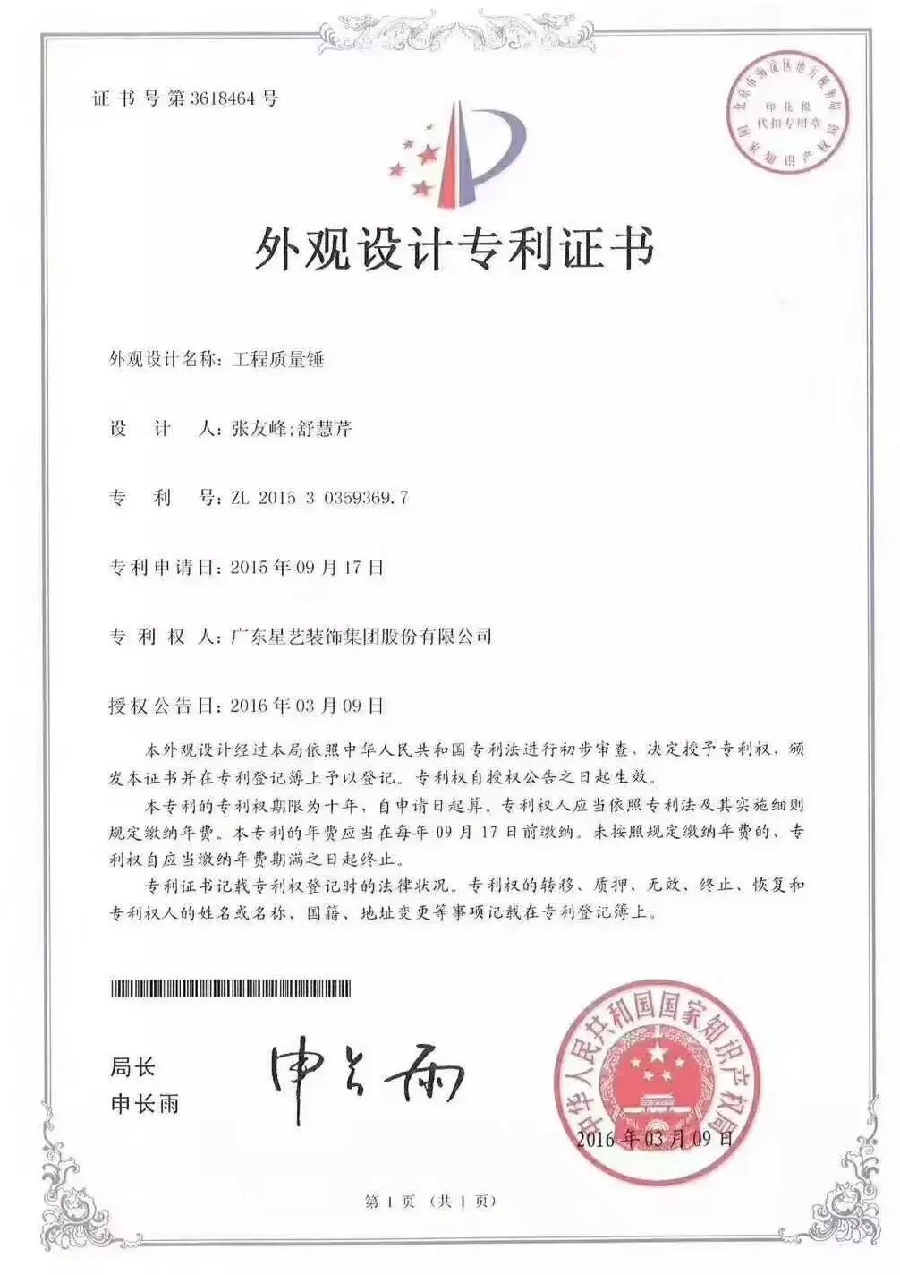 (星藝專利●工程質(zhì)量錘)