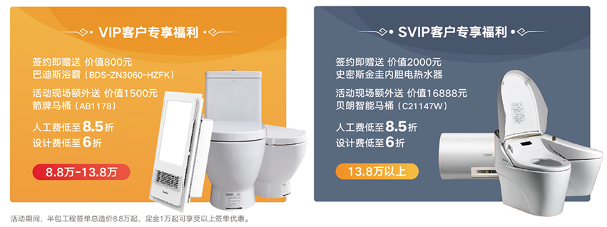 本次活動星藝裝飾廣州總部和數十家品牌建材聯合大促,指定品牌主材 尊享星藝裝飾專屬員工內部價,購買自營主材總價3萬以上,人工費更可直降至8折(純人工不打折),讓業主朋友可以一站式采購,裝修一步到位。盡量讓業主朋友無憂裝修,舒適體驗。