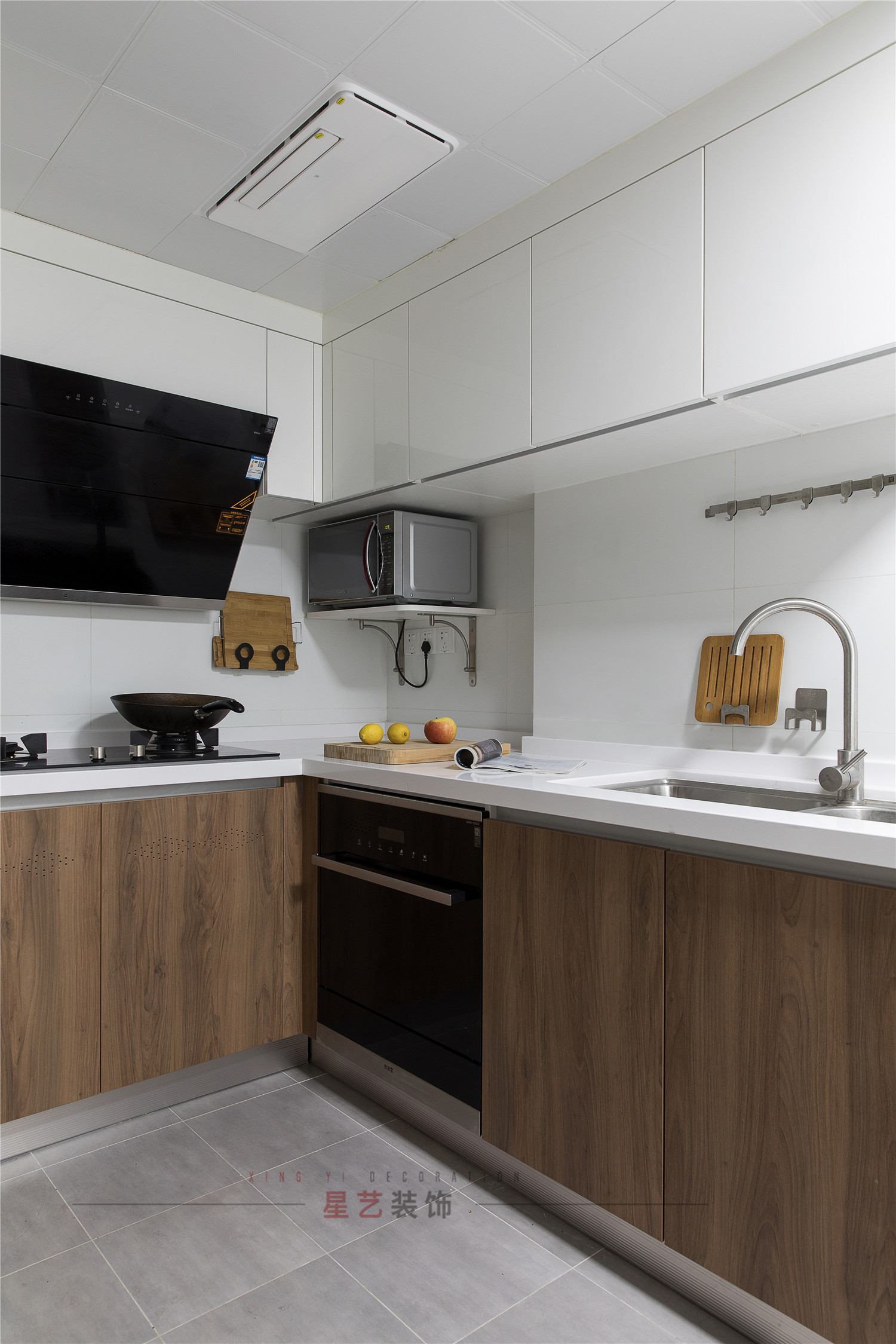 廚房設計也是比較簡約大氣,生活化,收納的櫥柜同樣采用原木的風格,和整體的設計形成呼應。一日三餐也是跟家人在一起的最歡樂的時光,記錄兒女一天天成長,一點一滴都是幸福的回憶。