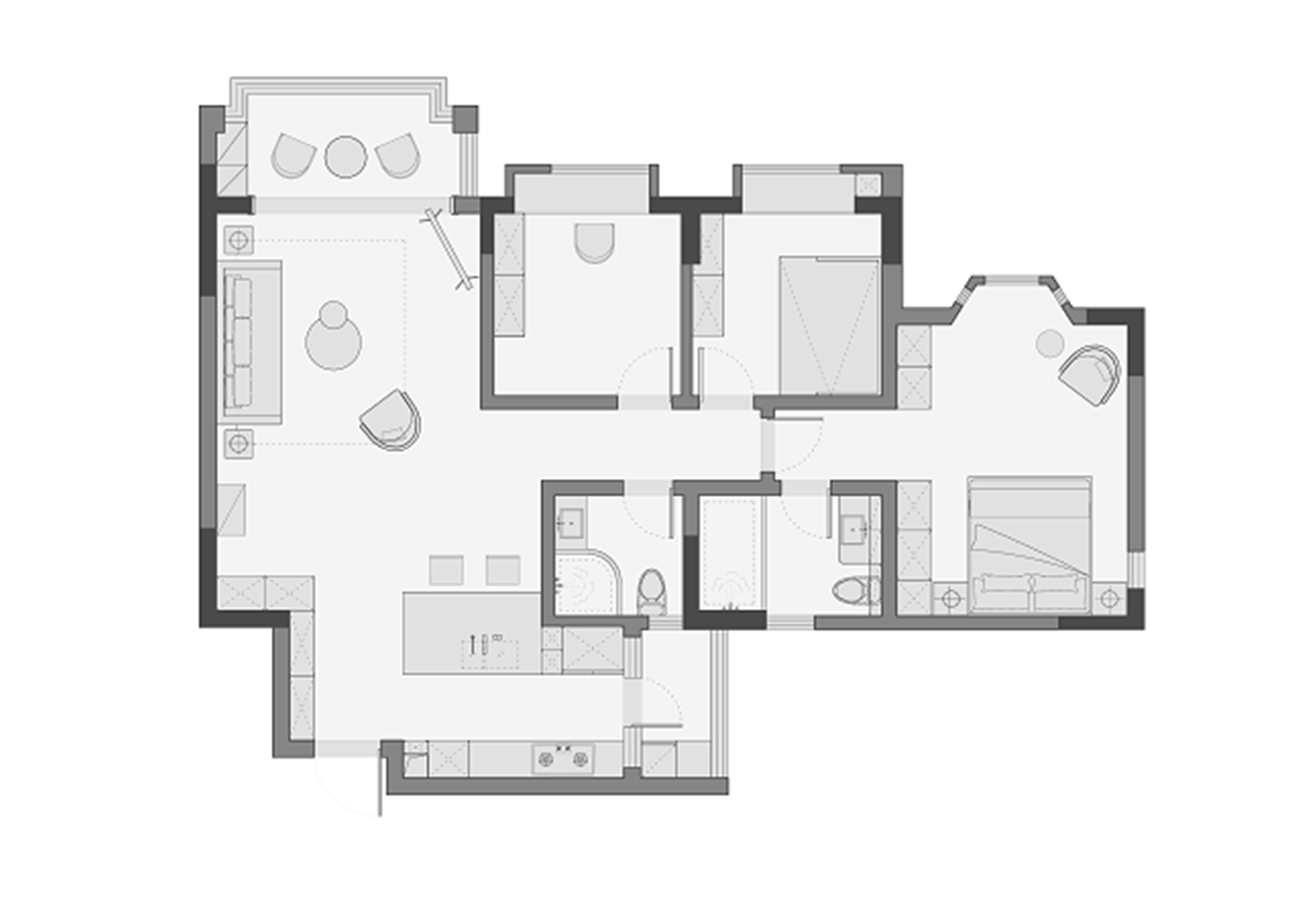 選擇開放式的廚房,植入一個超大導臺讓整個空間更加寬敞,多人使用都不會感覺太擁擠,體驗感極佳。日常一邊做菜的同時也可以跟家人交流,與最親密的人享受柴米油鹽帶來的樂趣。