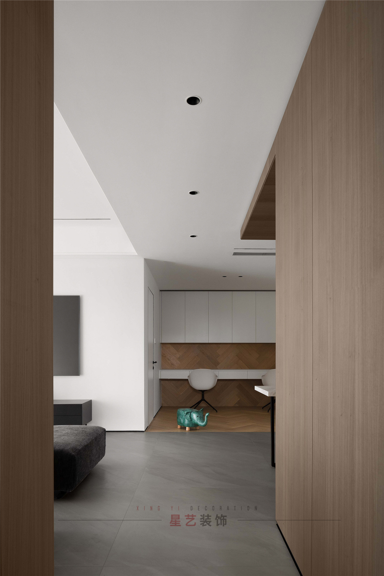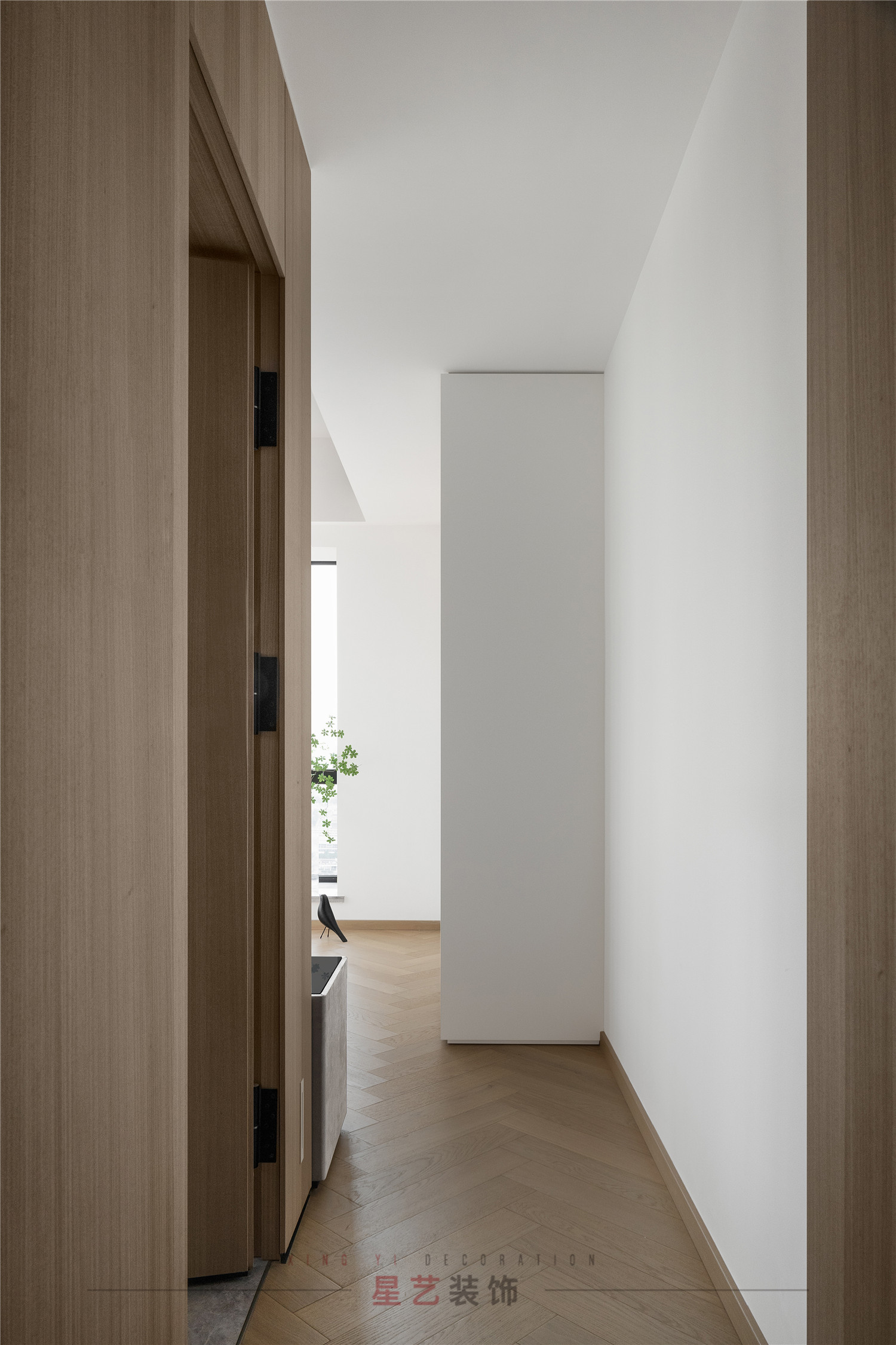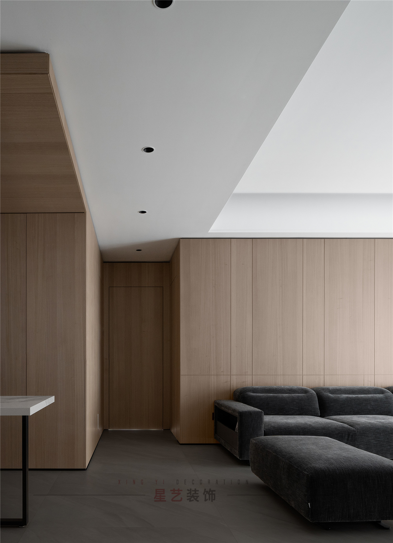 值得一提的是,整個設(shè)計都采用了大量的隱形門設(shè)計,利用空間的錯落造成視覺上落差,既不會顯得突兀也豐富了整體的空間層次。