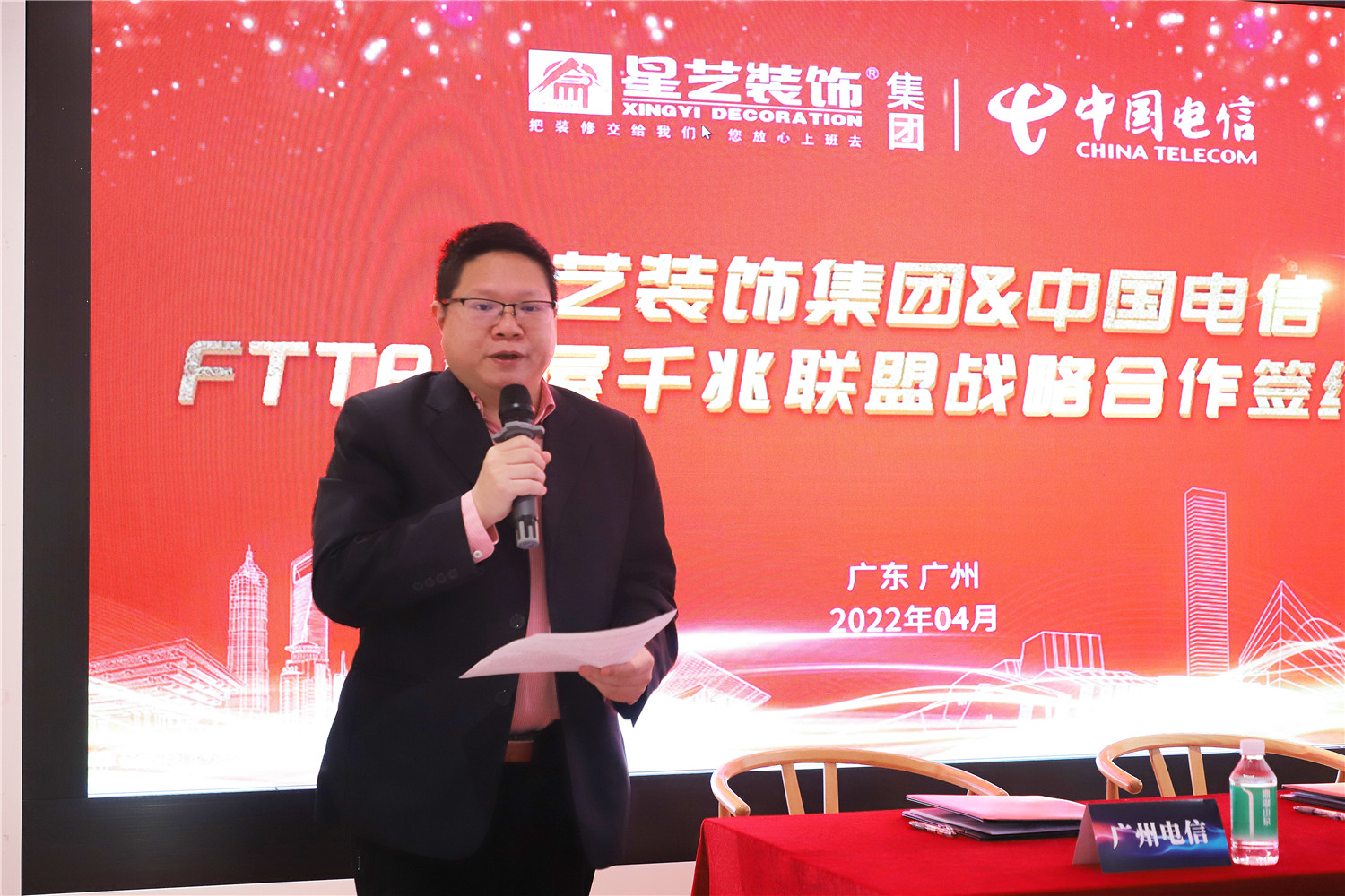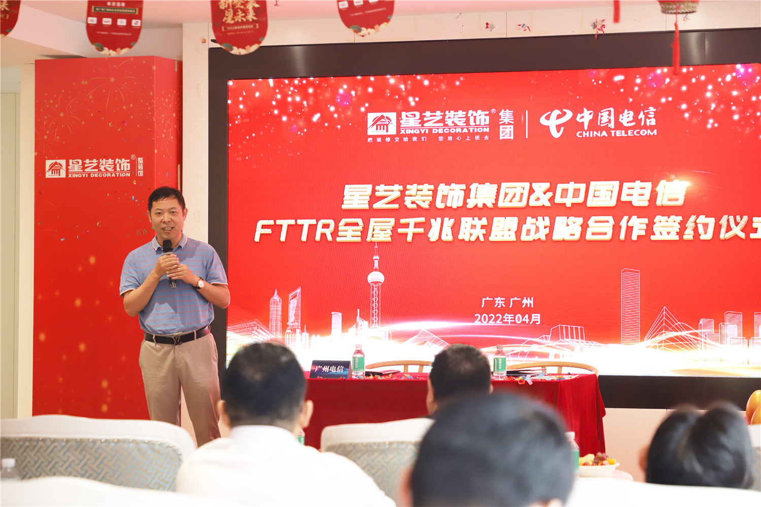 2022年4月24日,星藝裝飾廣州分公司與中國(guó)電信廣州分公司FTTR全屋千兆項(xiàng)目戰(zhàn)略合作簽約儀式在廣州市星藝整裝體驗(yàn)館圓滿舉行,在立足客戶需求為出發(fā)點(diǎn),合作共贏的基礎(chǔ)上,正式達(dá)成FTTR全屋千兆項(xiàng)目戰(zhàn)略合作伙伴關(guān)系,實(shí)現(xiàn)強(qiáng)強(qiáng)聯(lián)合、優(yōu)勢(shì)互補(bǔ)。
