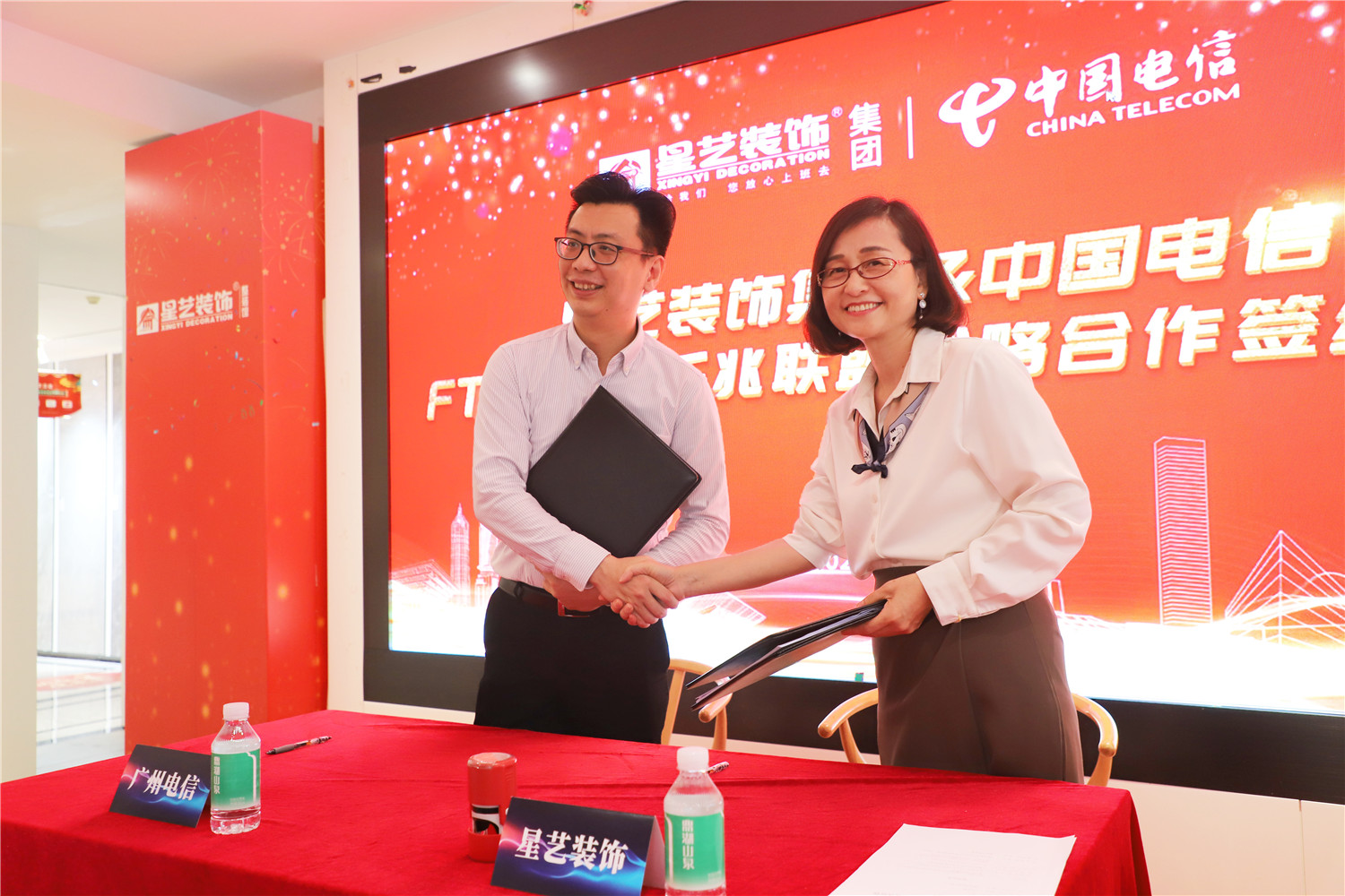 在現(xiàn)場(chǎng)嘉賓的共同見(jiàn)證下,星藝裝飾廣州分公司副總經(jīng)理劉亦萍和中國(guó)電信廣州分公司創(chuàng)新中心總經(jīng)理李應(yīng)春代表雙方在戰(zhàn)略協(xié)議書(shū)上簽字,開(kāi)啟了戰(zhàn)略合作的新篇章!