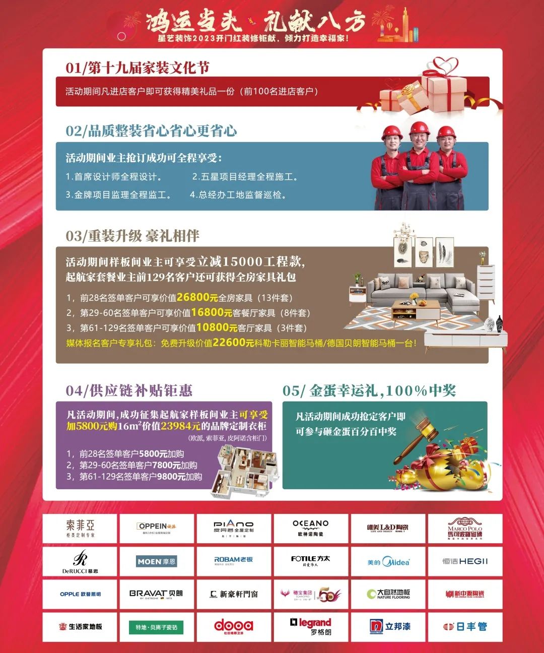 04 活動期間樣板間業主可享受立減15000工程款,起航家套餐業主前129名客戶還可獲得全房家具禮包
