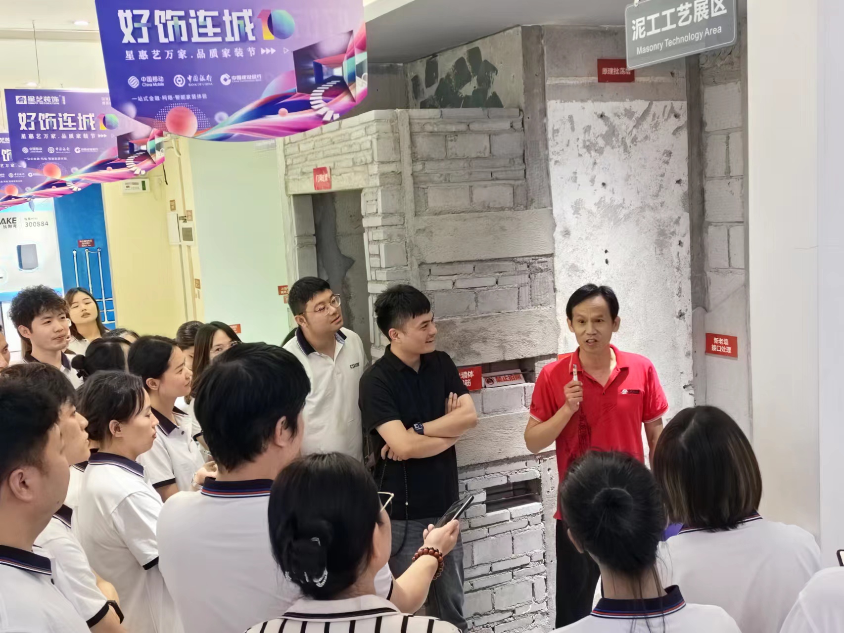 余經理借助星藝展廳的工藝展示,介紹了墻面和吊頂工藝流程+衛生間沉箱施工。