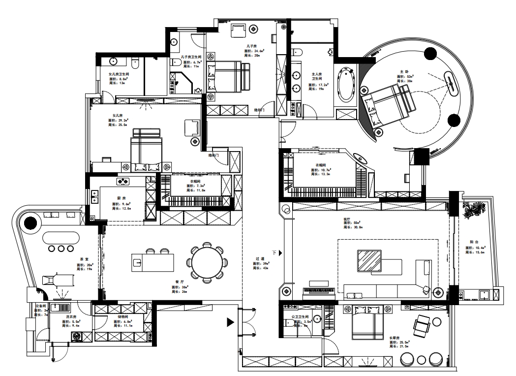 這套房子,是業主一家三代的主要生活場所。6口之家,空間功能的豐富性不能少,日常起居、大人辦公、全家觀影等需求一并滿足。