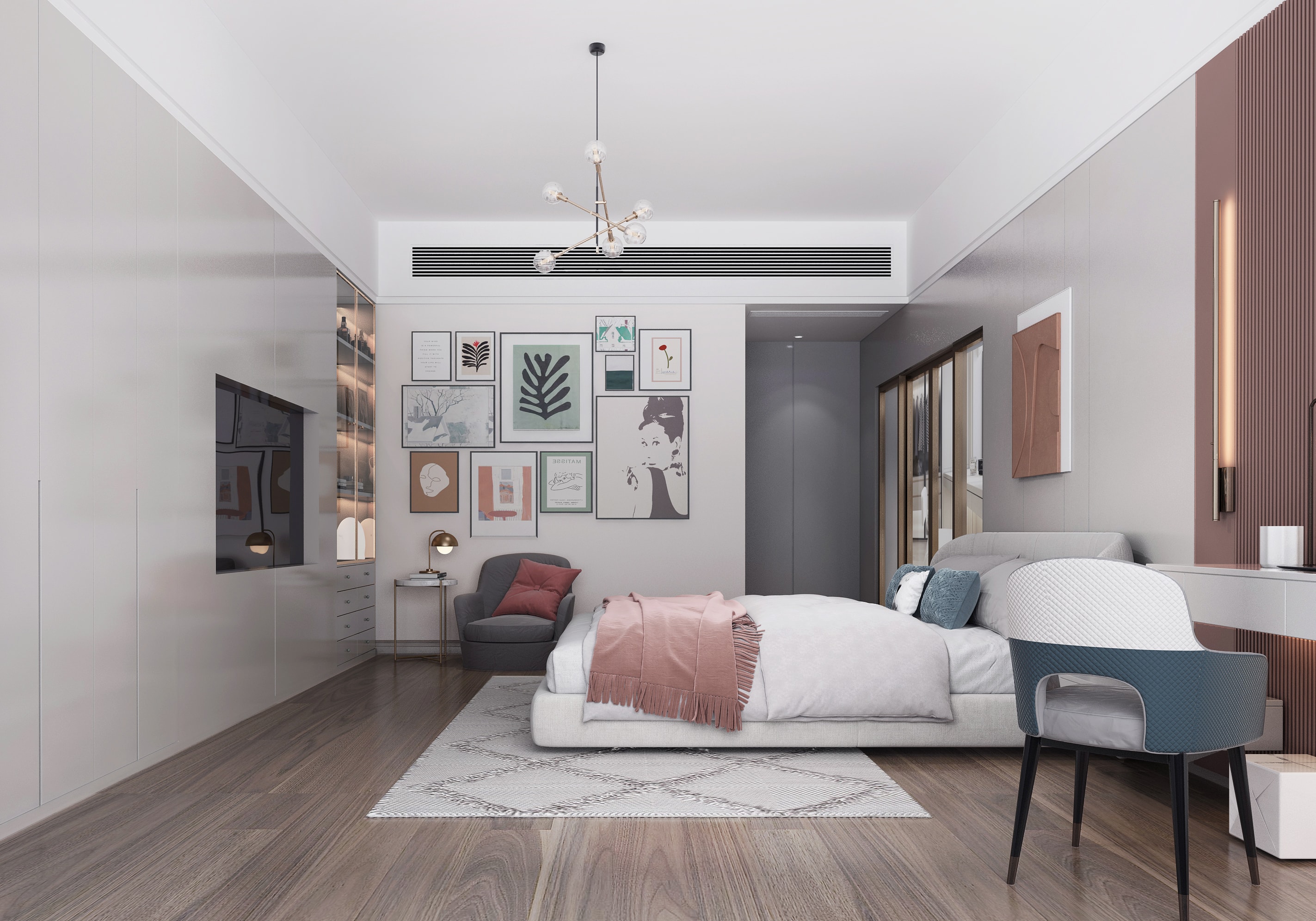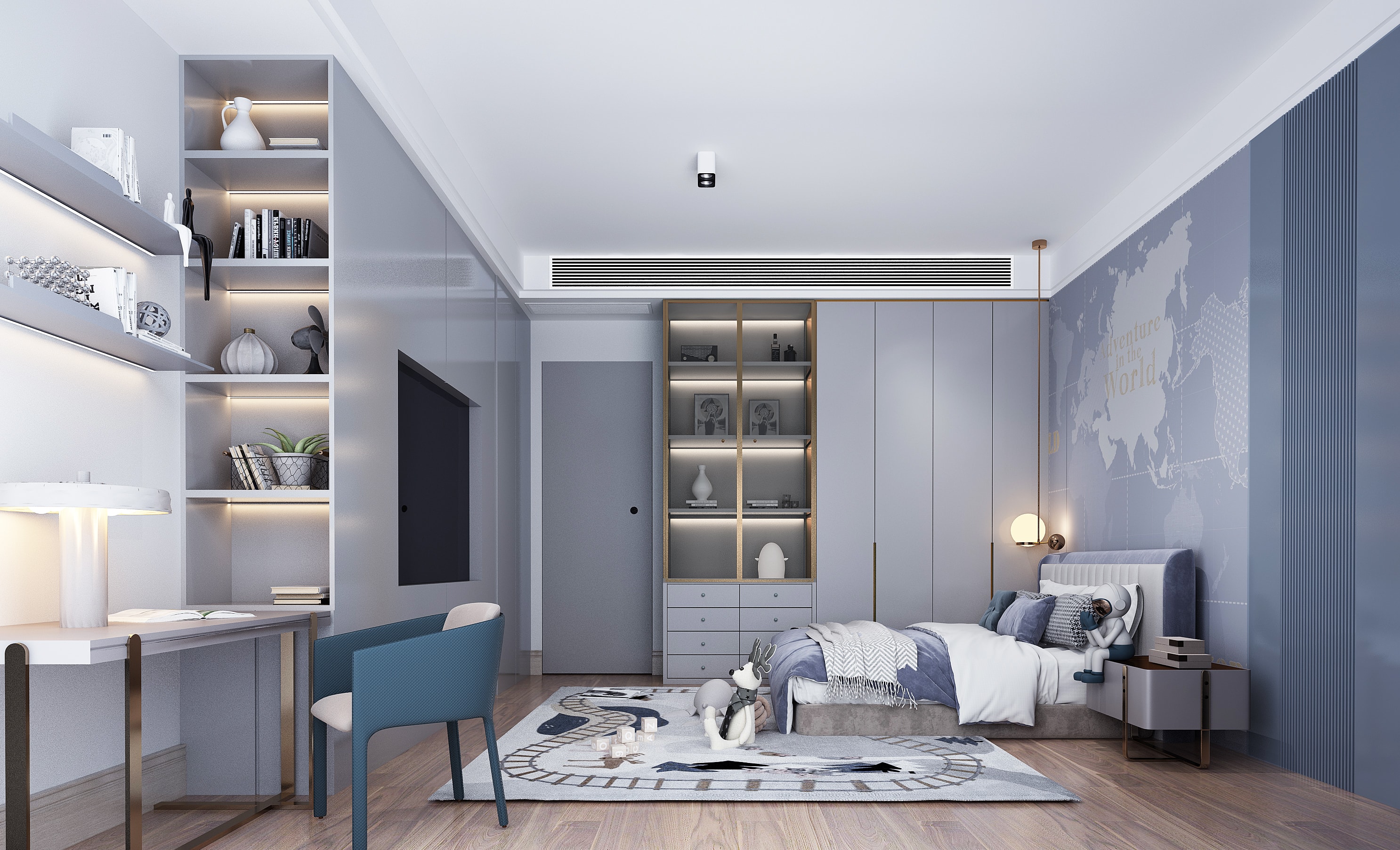低飽和度的粉色和藍色的兒童房,沒有繁復的線條和切割造型,只在細節處做好陳設,尊重時間、尊重成長。
