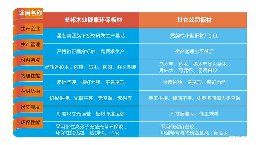藝邦木業香杉木生態板擯棄傳統生態板的工藝,突破了傳統生志板以密度板和刨花板為基材的游離甲醛高、容易起泡、分層、爆邊、防潮性、差握釘力差等缺陷。